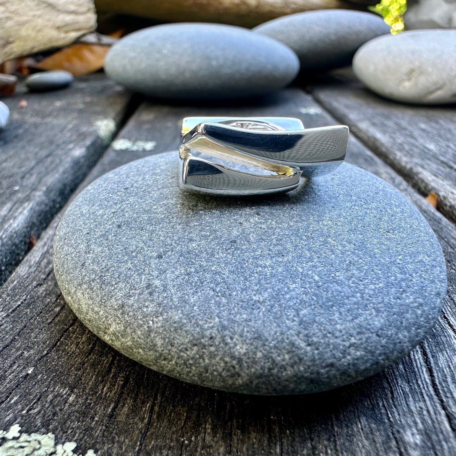 Vintage (Modernist) Danish Jens Johs Aargaard geometric abstract ring with a curved square shank. All hallmarks are present & the ring is in great condition.