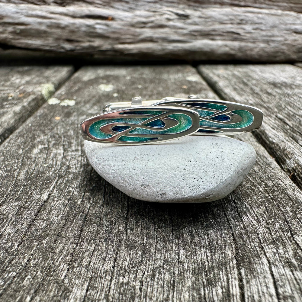 Vintage Scottish jeweller Malcom Gray has made these divine cufflinks in a Celtic style using blues and greens.