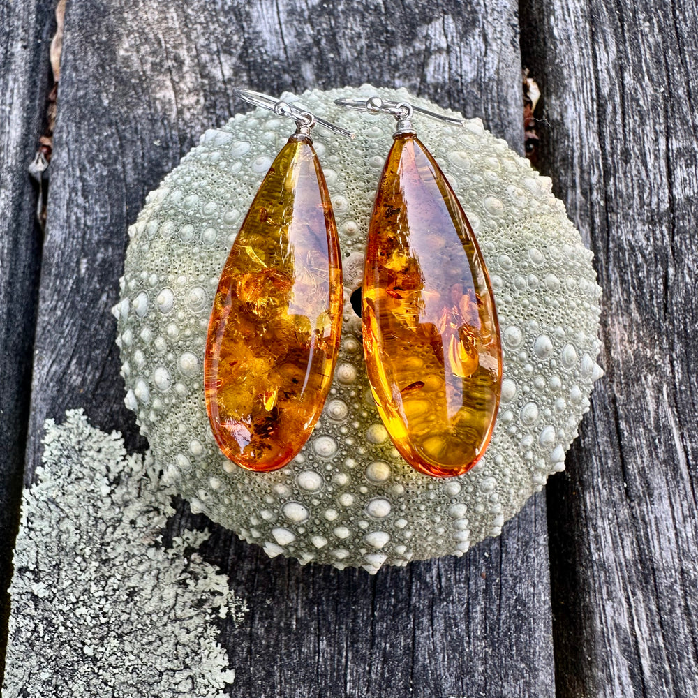 Cognac coloured Baltic amber drop earrings with quality sterling silver findings.