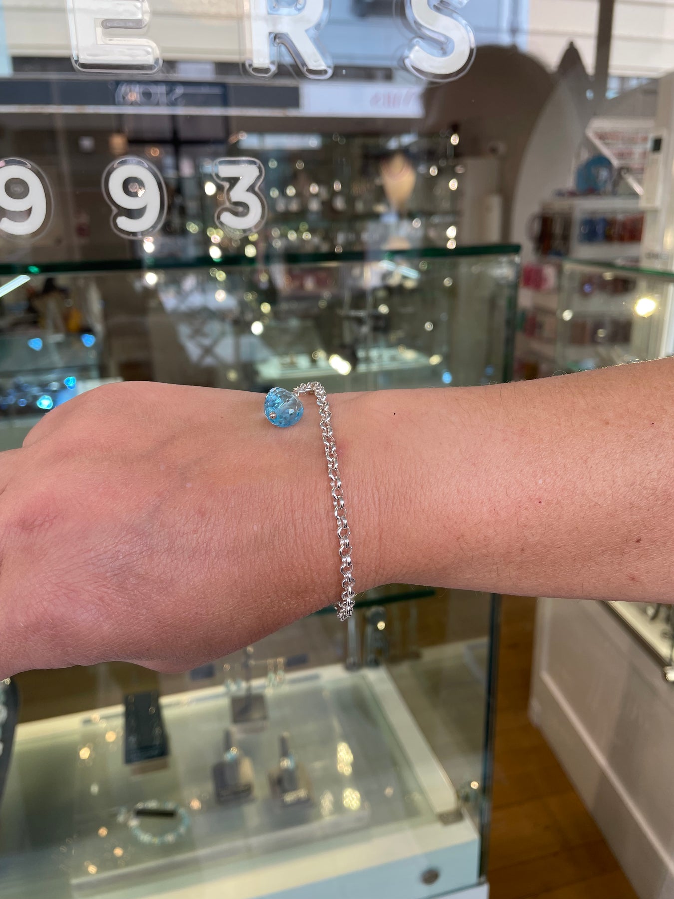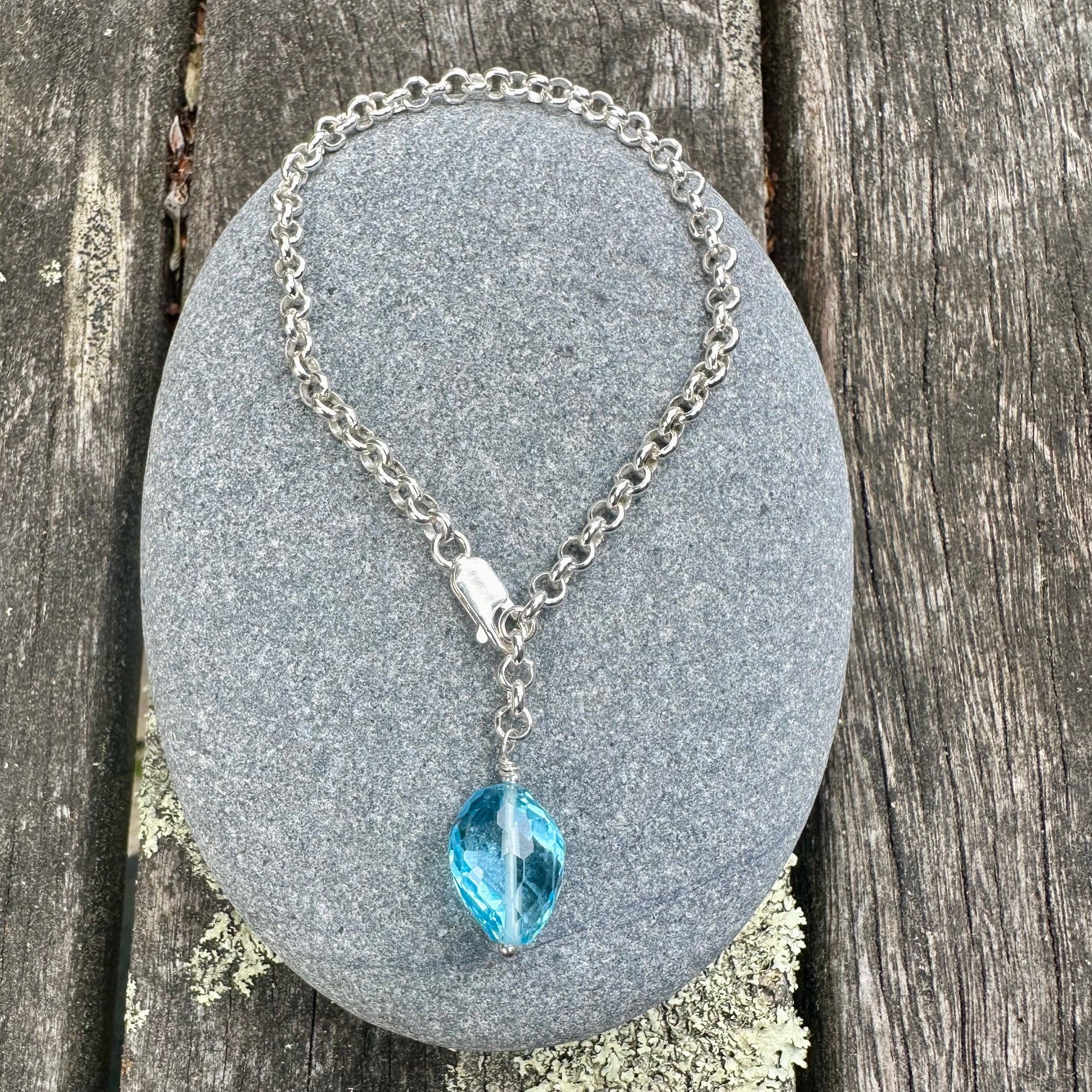 Faceted blue topaz bracelet on a sterling silver rolo chain.