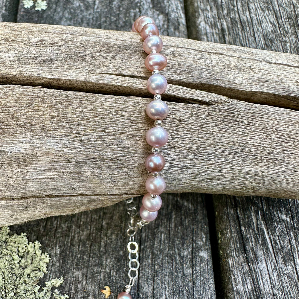 Small pink freshwater pearls with sterling silver spacers and findings.