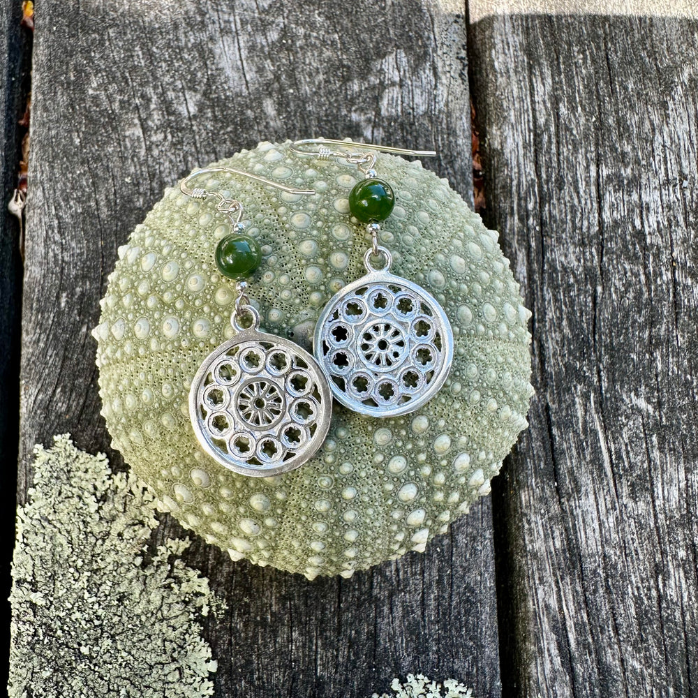 Sterling Silver Rose Window & NZ Greenstone Earrings