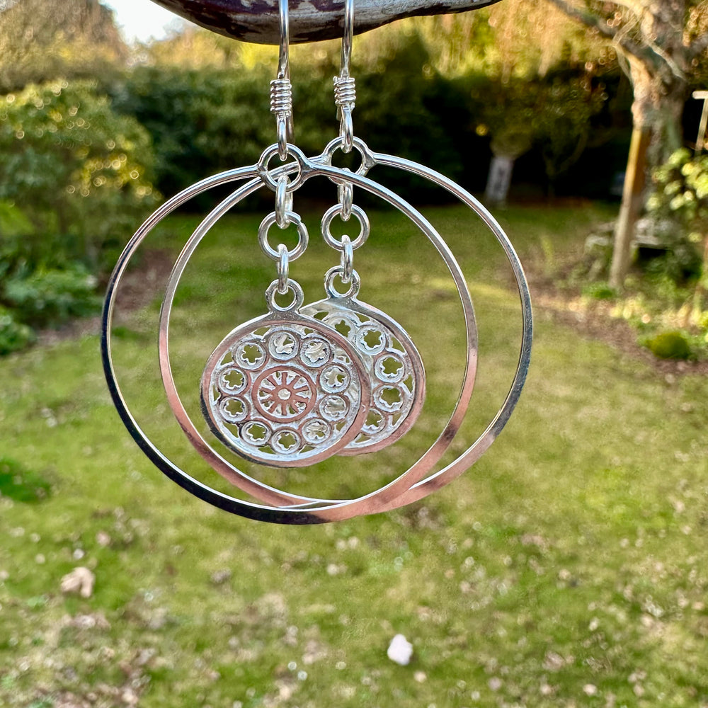 Rose windows in large hoops earrings