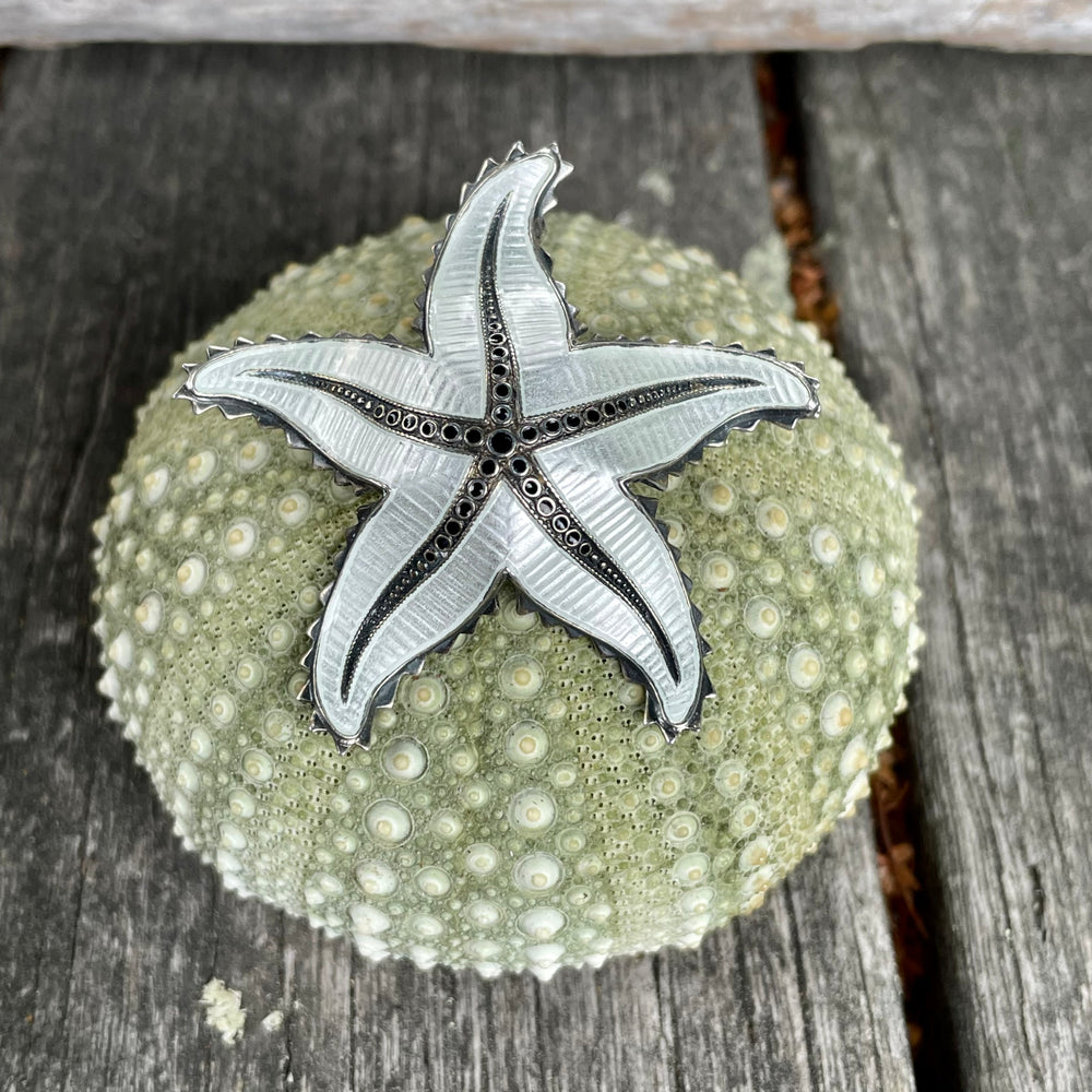 Vintage Scandinavian white Ivar T Holth enamel and sterling starfish brooch.