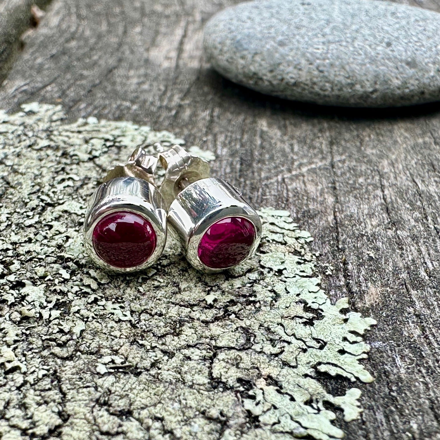 5mm lab grown ruby studs in sterling silver.