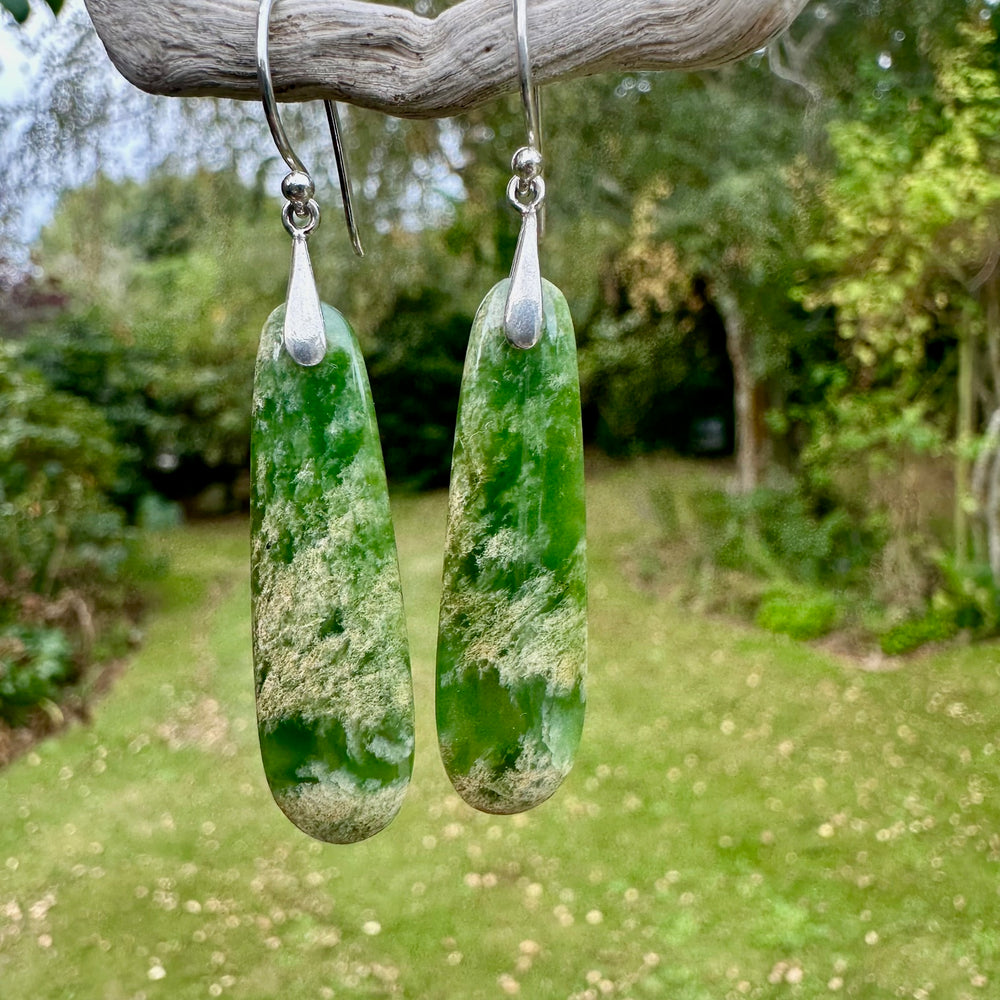 Beautiful small Marsden flower greenstone matched pair earrings with quality sterling silver fittings.