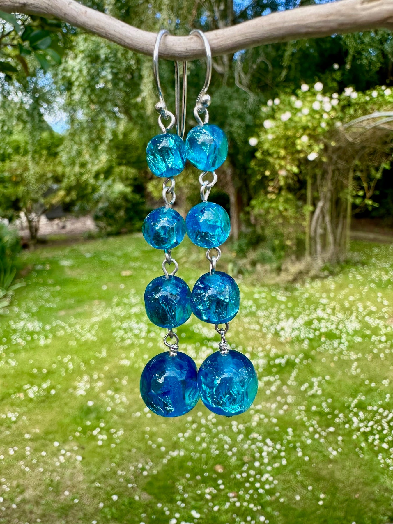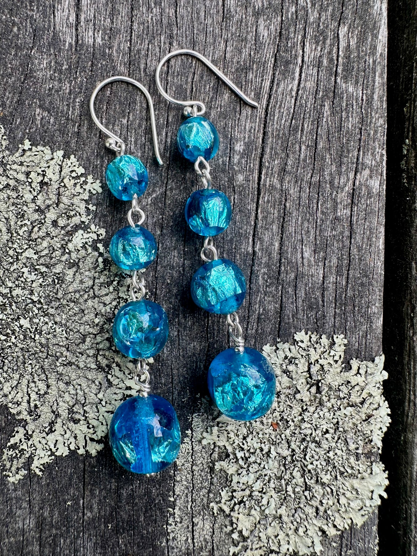 Vintage 4 tier czech foil earrings