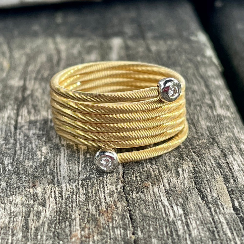 Italian 18 carat yellow gold and diamond (.08ct) spiral ring. This is a very interesting and beautiful ring from the archives