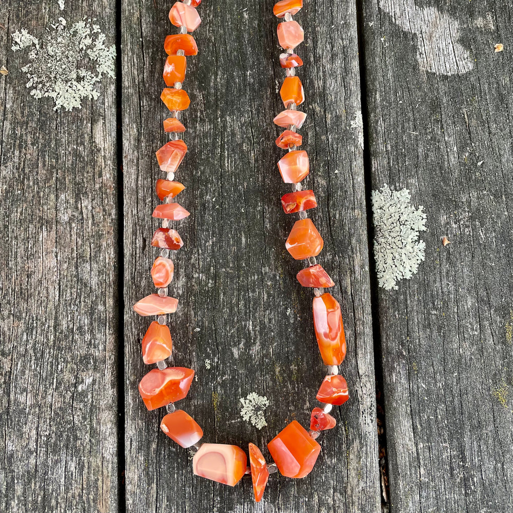 A beautiful bright orange necklace made from uniquely faceted Mexican fire opal beads.