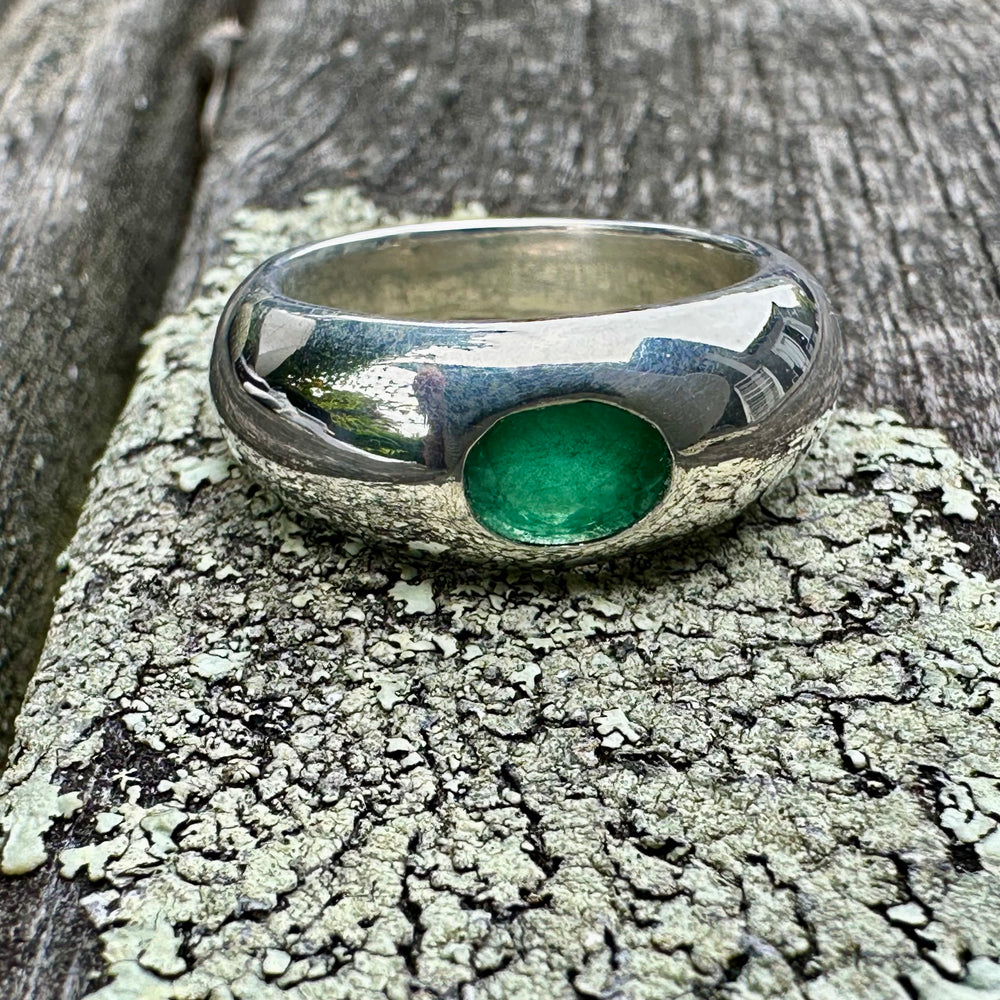 Brazilian emerald (.75ct) signet ring in sterling silver.
