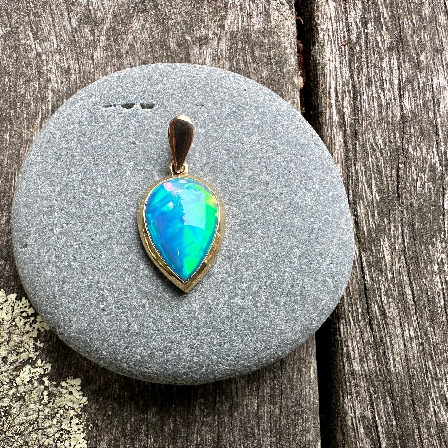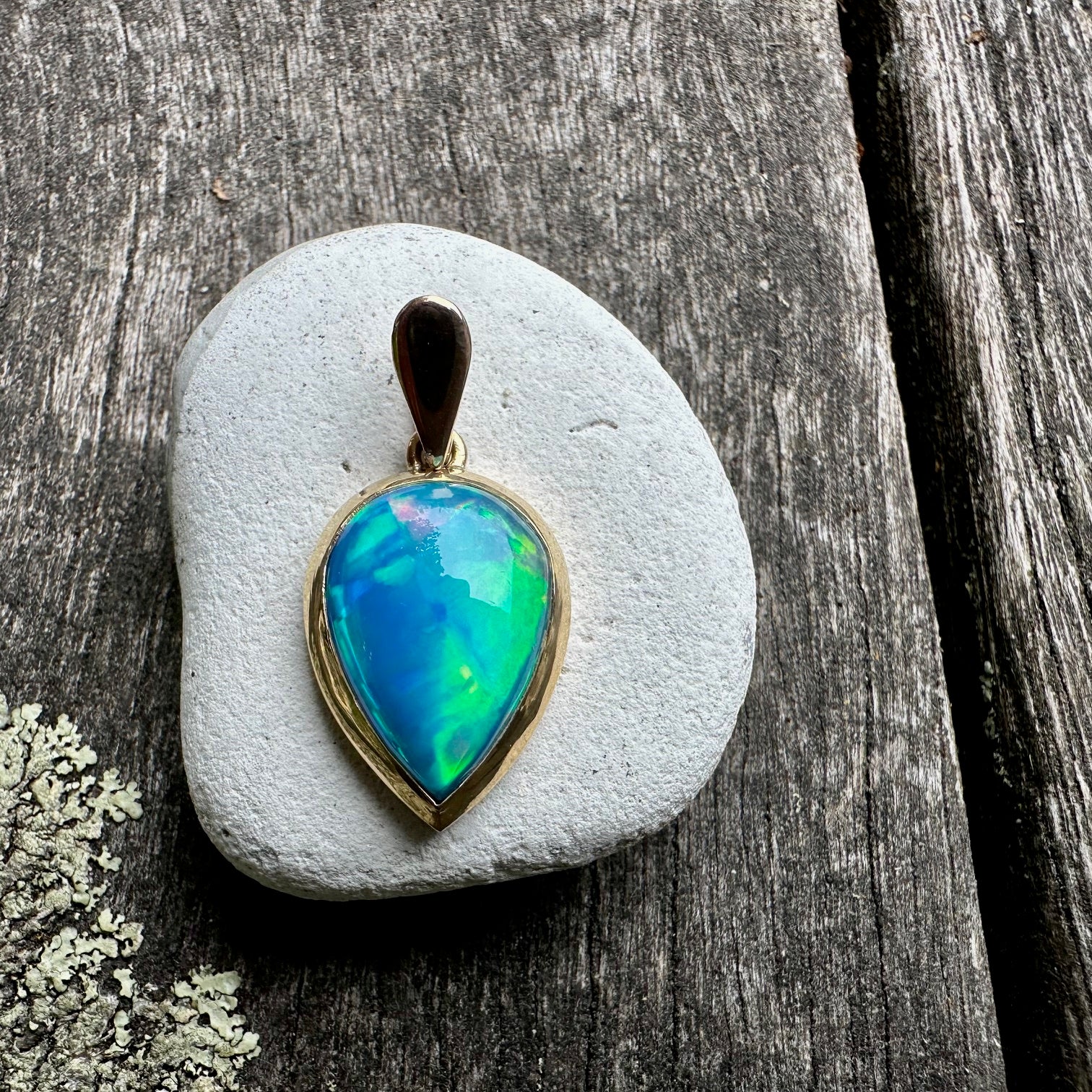 5.36 Ethiopian opal pendant in 9ct yellow gold