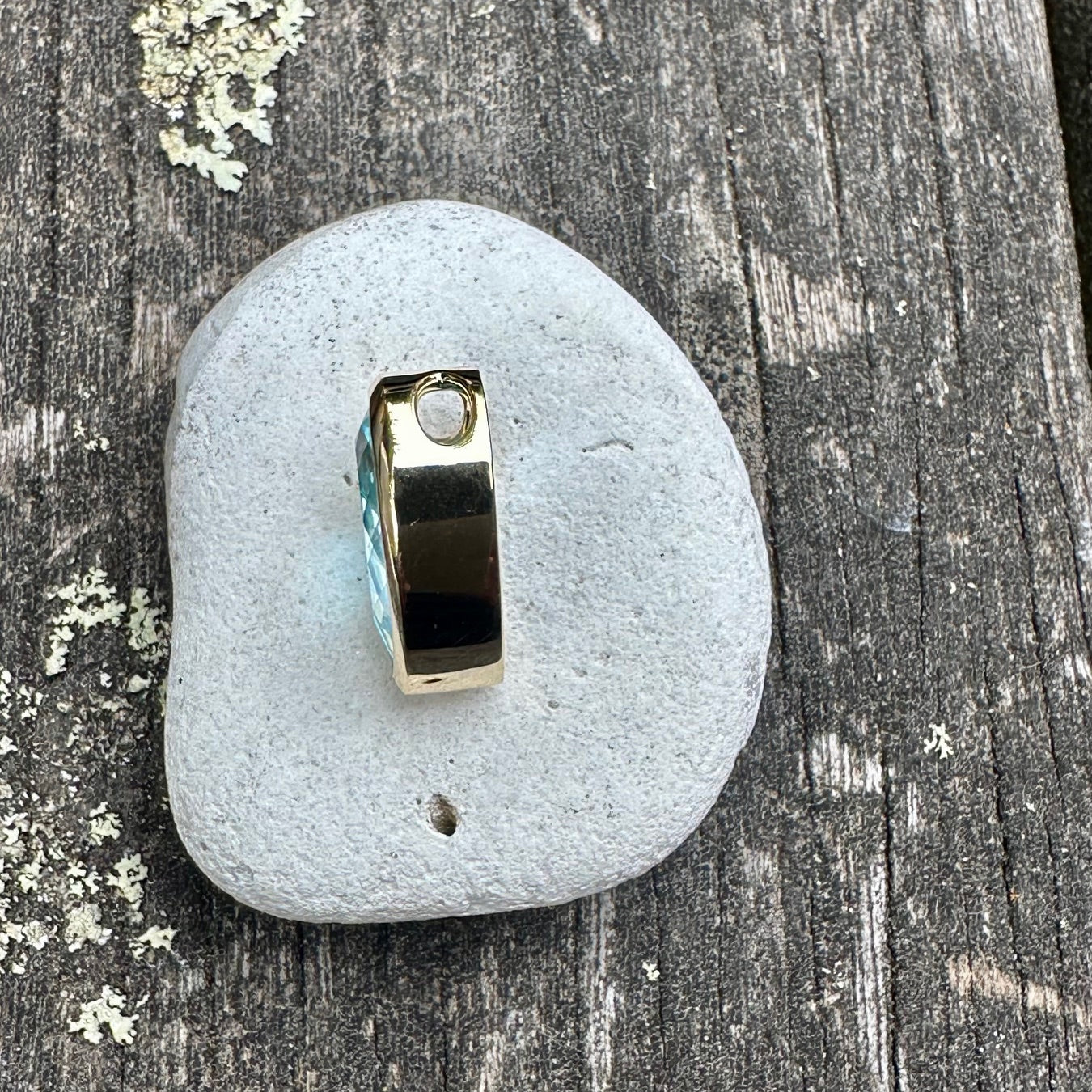 5.95 ct Blue topaz slider pendant in 9 ct yellow gold