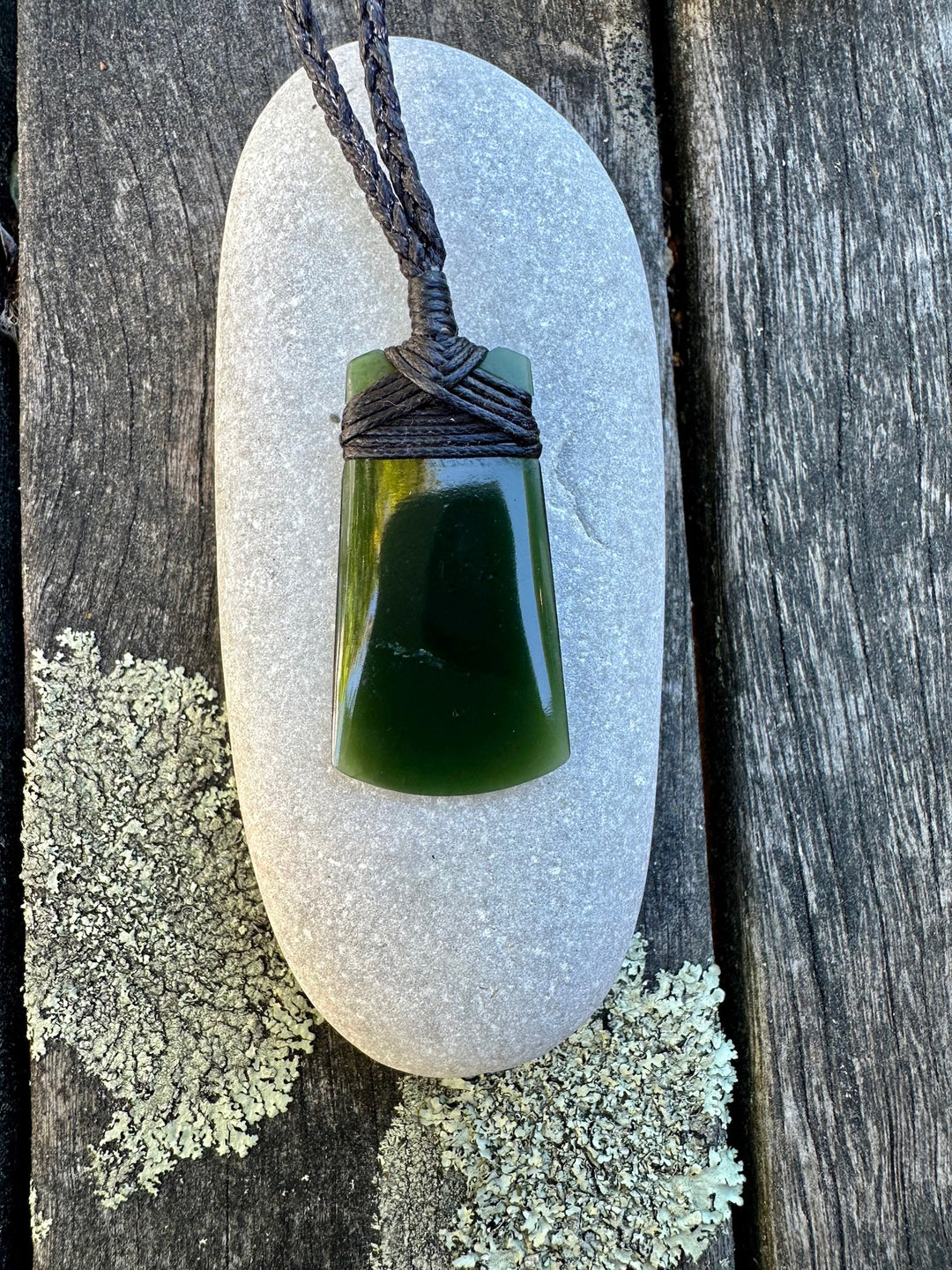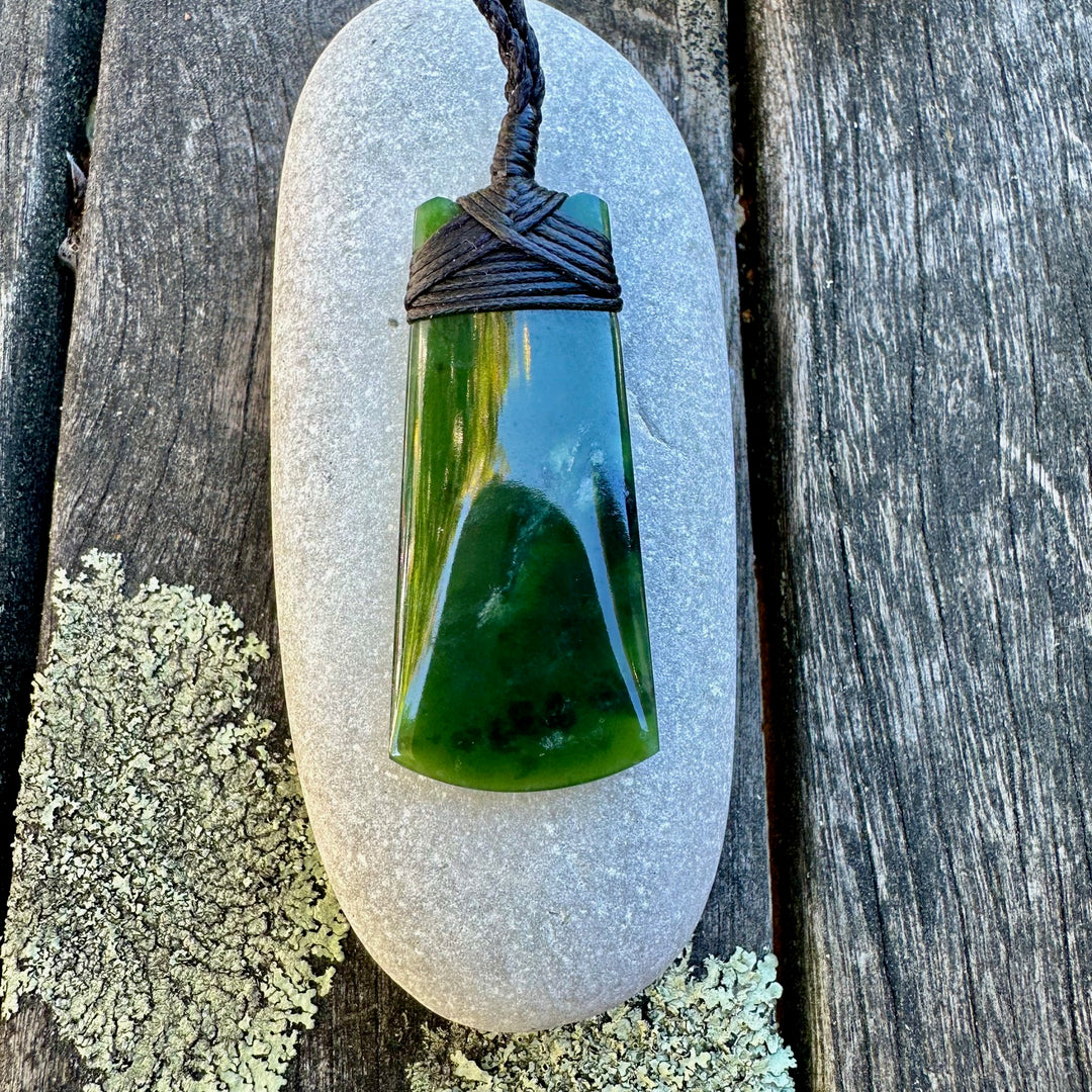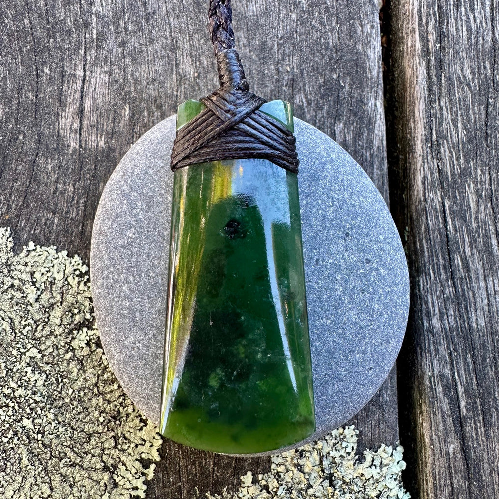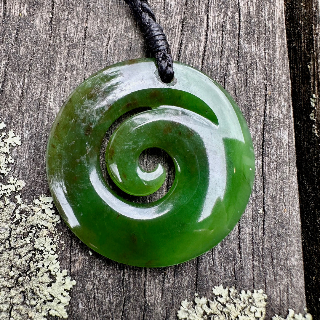 All our pounamu carvers are incredibly talented. Jeremy has been carving since he was 12 and his collection of pieces with Marsden Flower is sublime. This pounamu comes from the Greymouth area of the West Coast. Jeremy cuts the stone to incorporate the colour into the piece and he often has a highly polished finish which adds beauty to the whole carving.