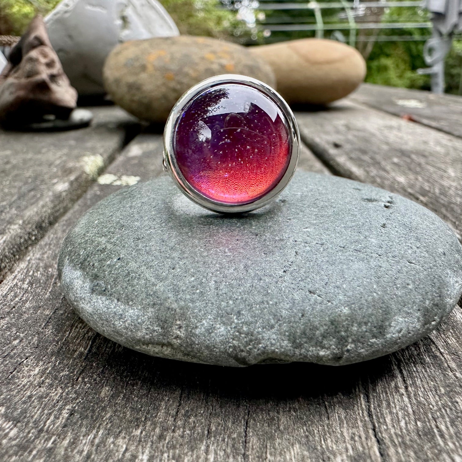 Large 18mm Dragons breath ring in a sterling silver setting.