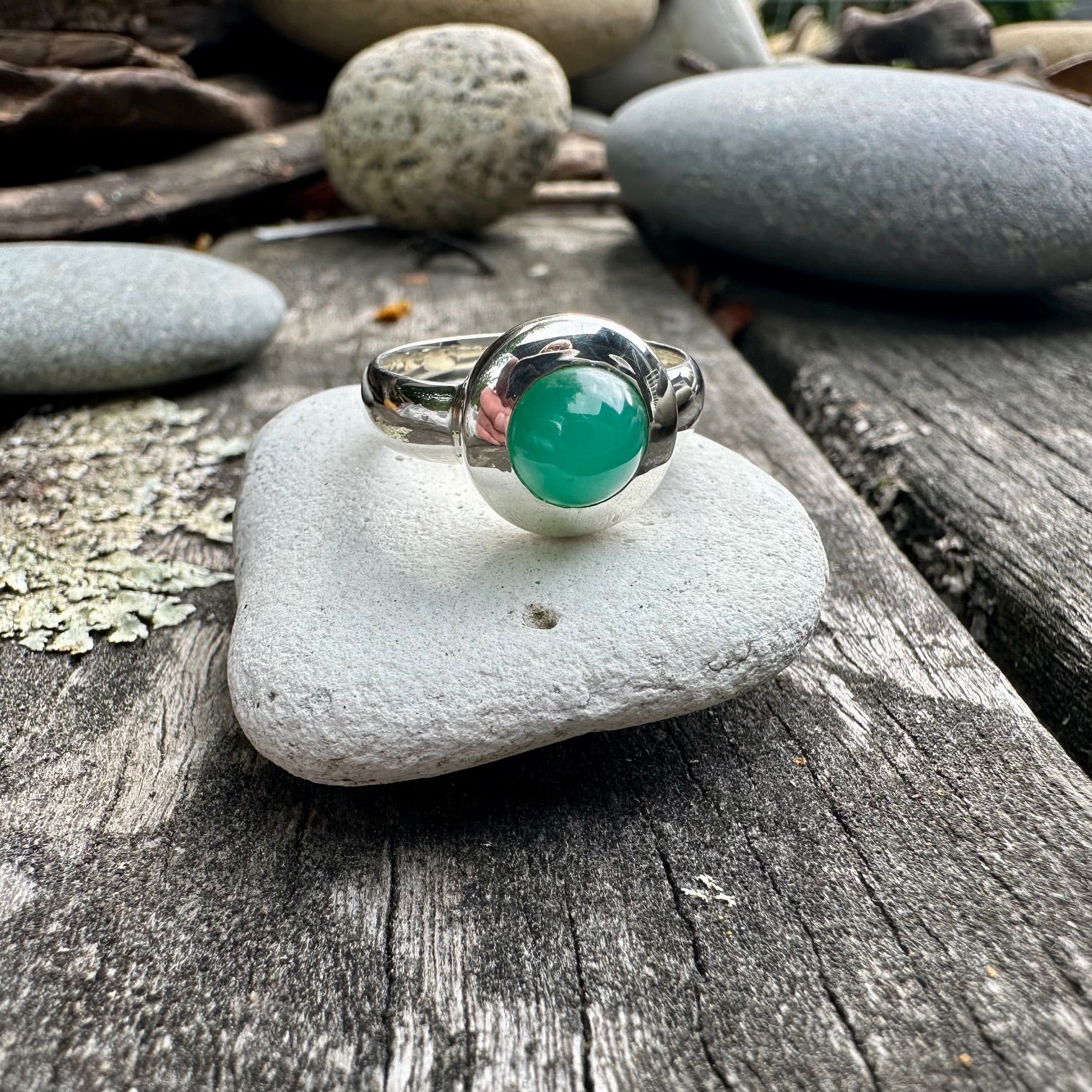 Chrysoprase ring in sterling