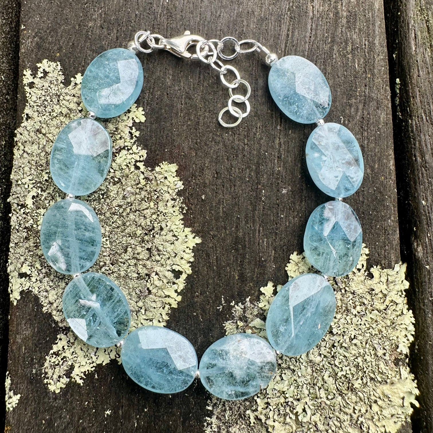 Faceted aquamarine bracelet with quality sterling silver findings.