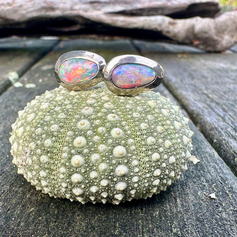 Absolutely gorgeous 1.3ct Australian crystal opal studs in 14 carat white gold.