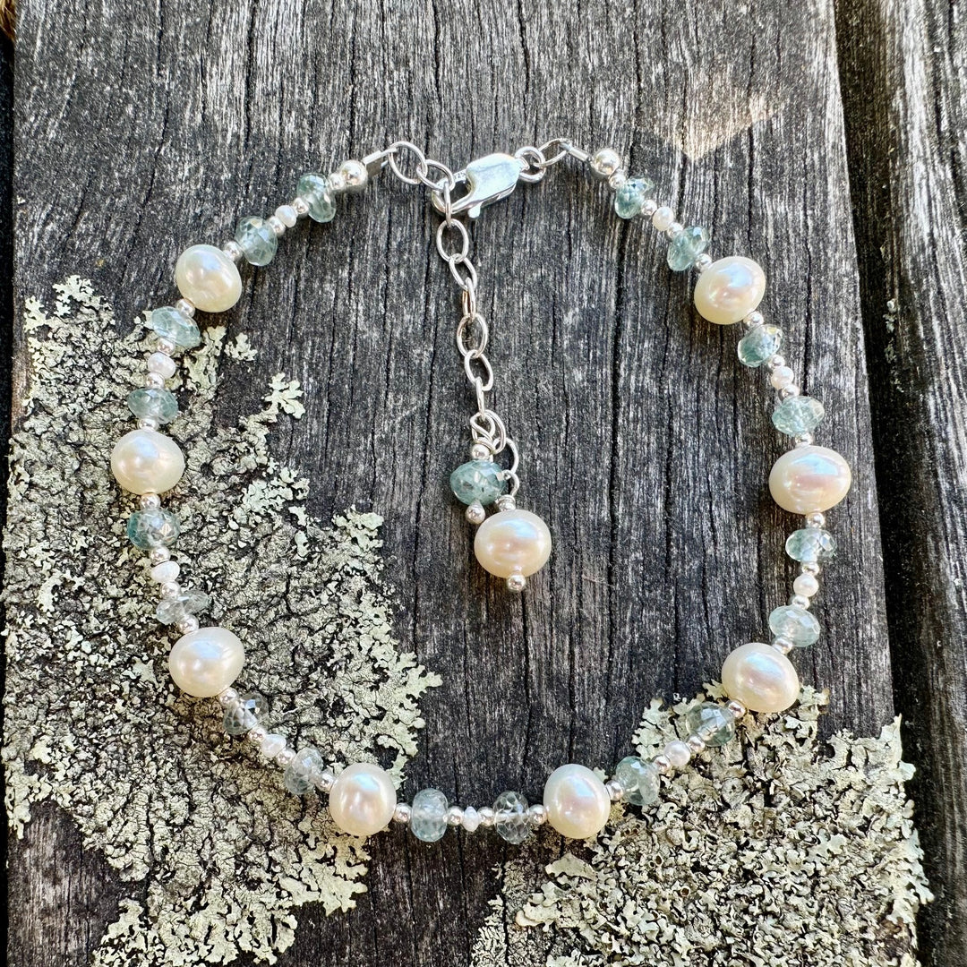 Blue zircon & freshwater pearl bracelet