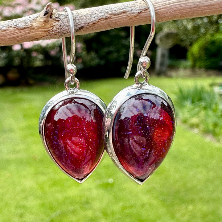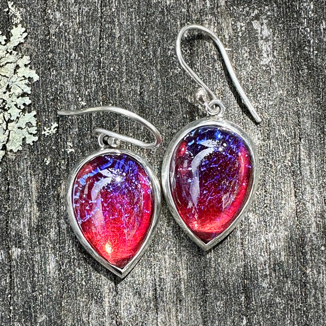 Vintage dragons breath earrings, set in sterling silver.