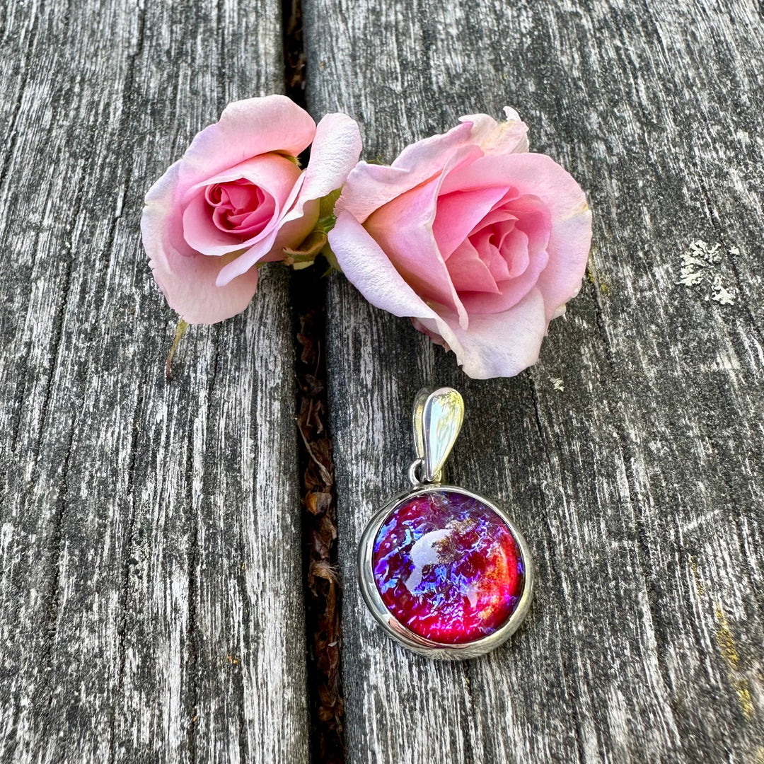 20mm large Vintage Dragons Breath pendant set in sterling silver.