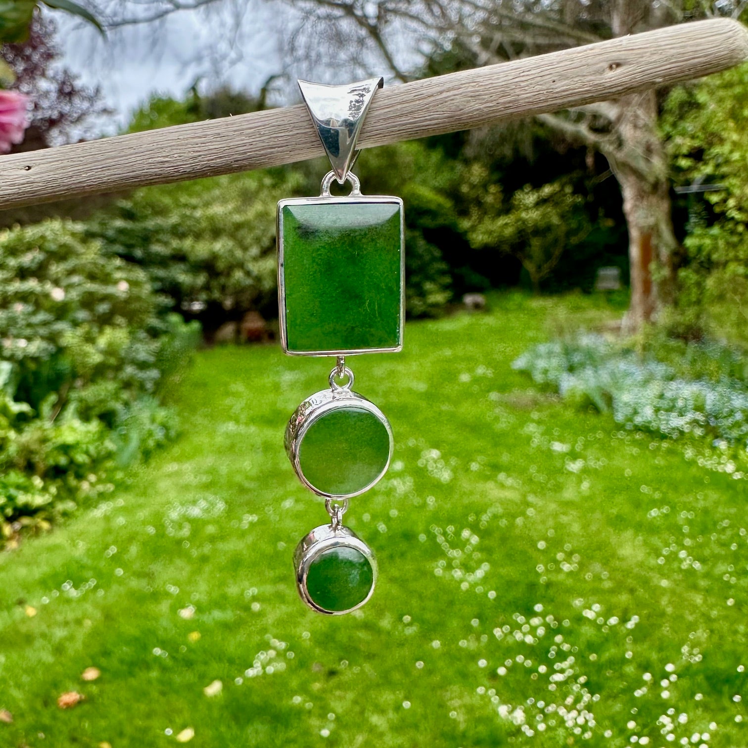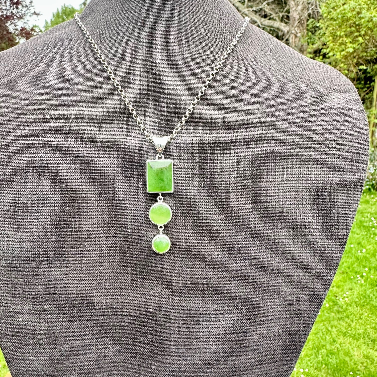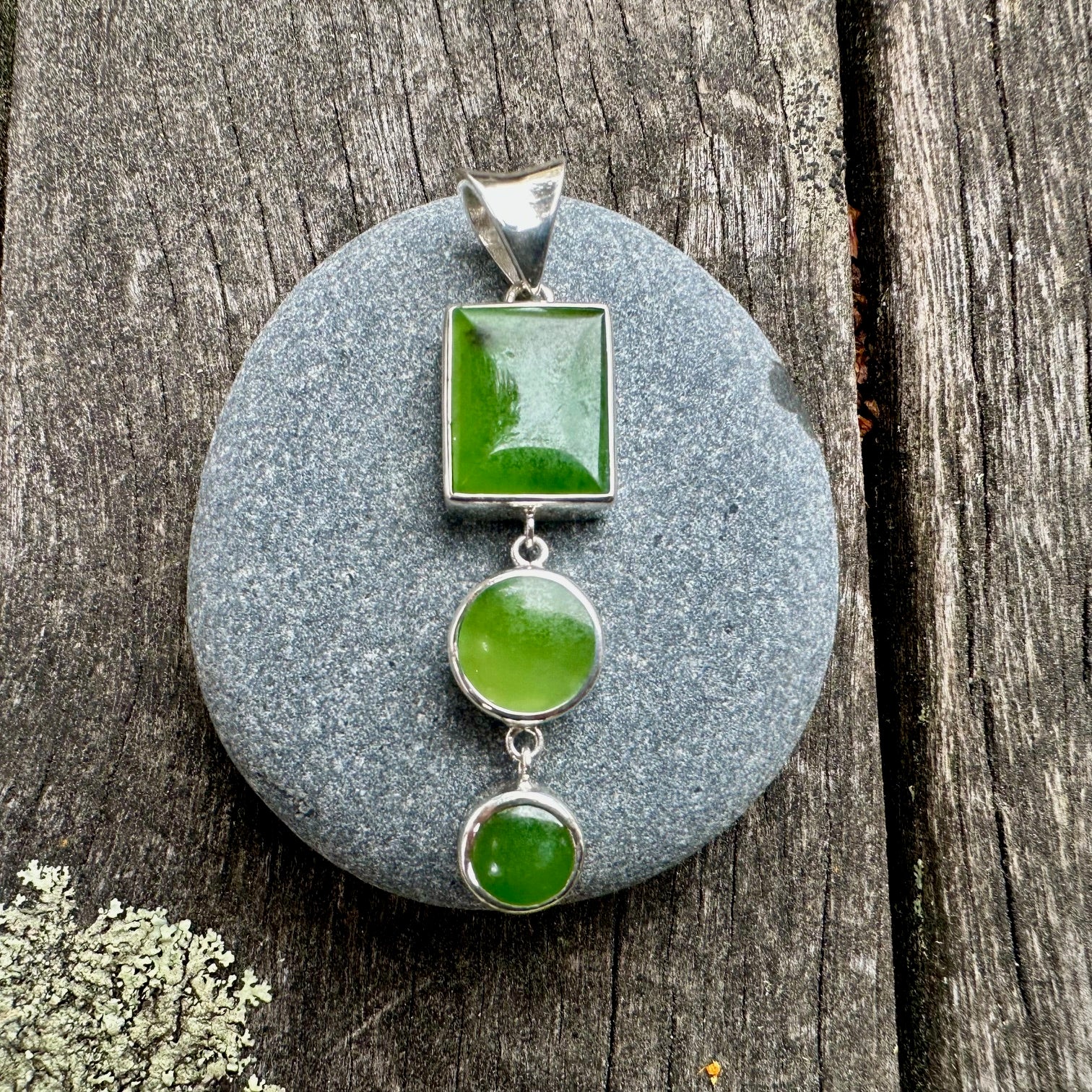 3 tier pounamu ( NZ Greenstone) pendant set in sterling silver.