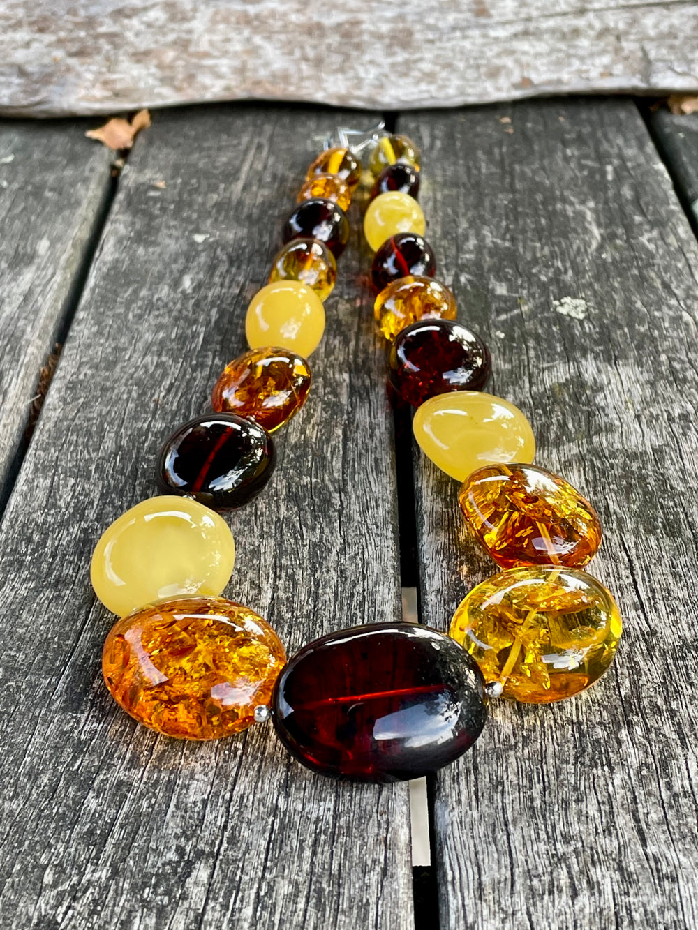 121 grams Of divine Baltic Amber in cognac, butterscotch and dark Amber with sterling silver findings