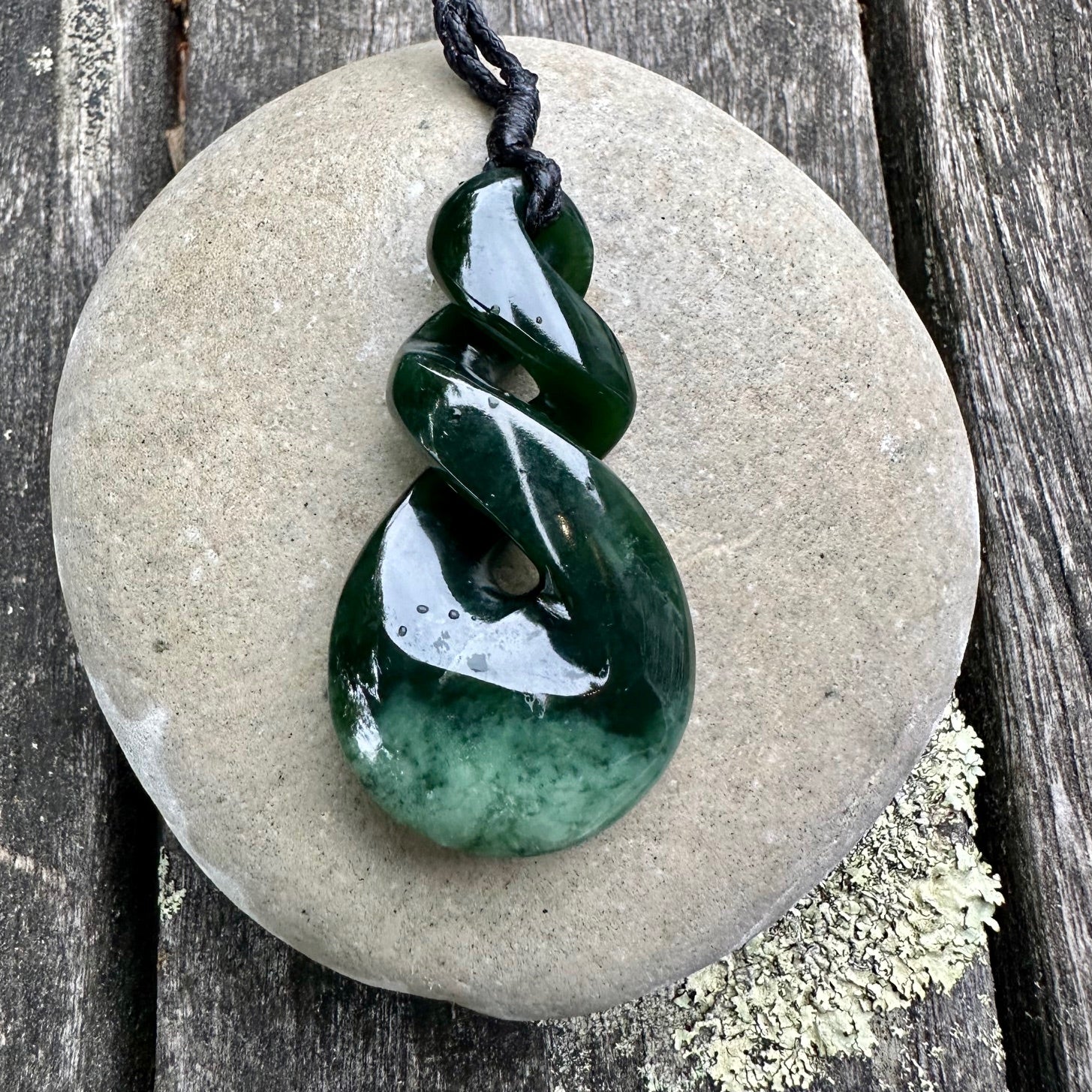 Marsden Flower Greenstone comes from the Marsden area of the West Coast of New Zealand. The gold-coloured or white variegation in the piece is called "flower" and makes this type of greenstone particularly valued and distinctive