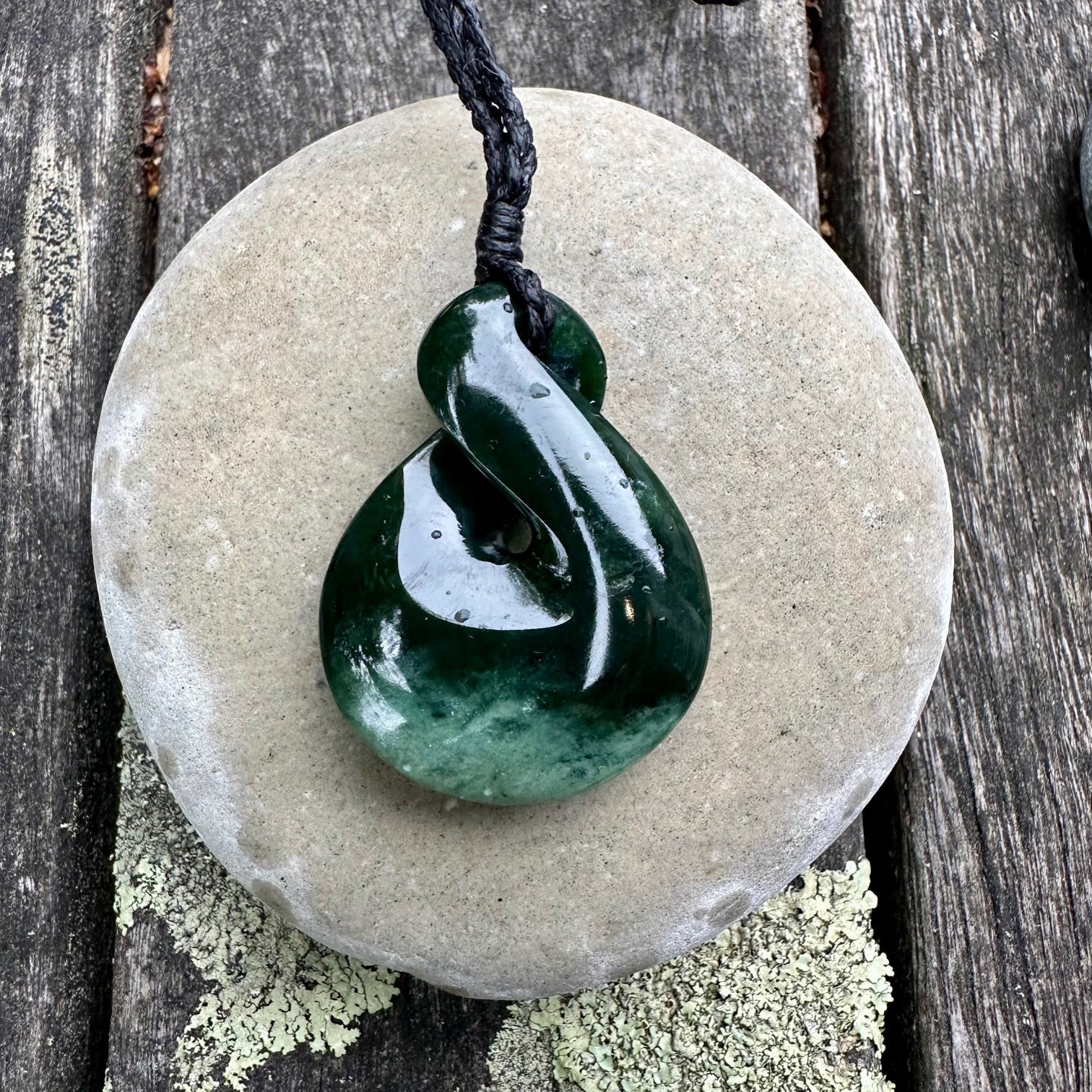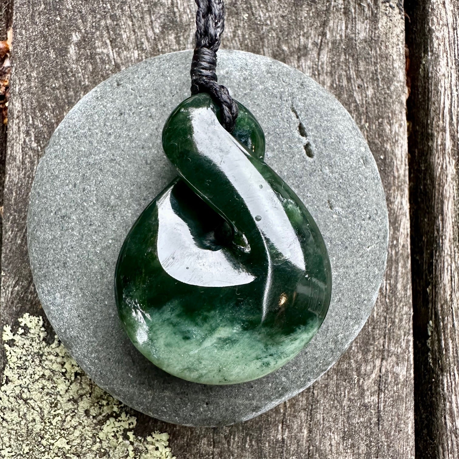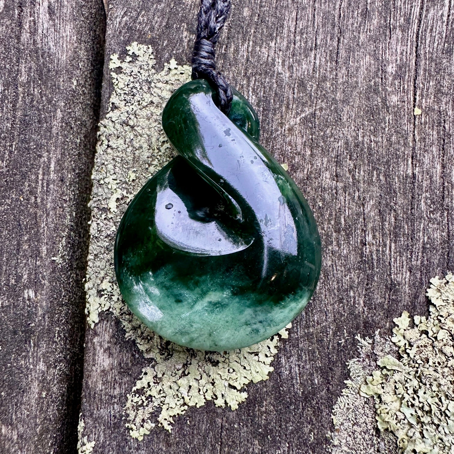 Marsden Flower Greenstone comes from the Marsden area of the West Coast of New Zealand. The gold-coloured or white variegation in the piece is called "flower" and makes this type of greenstone particularly valued and distinctive