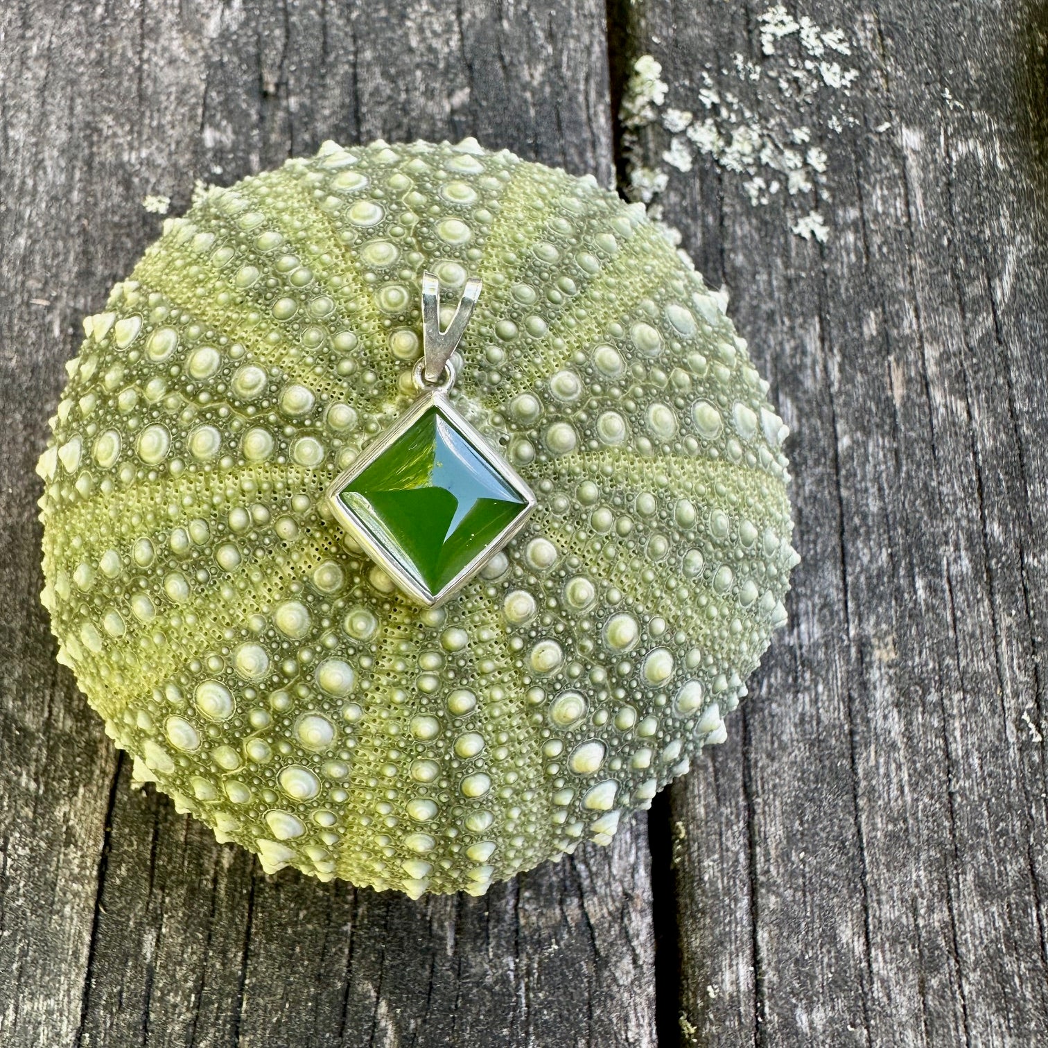 New zealand greenstone set in sterling silver.